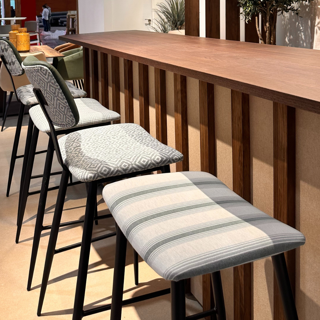 - Patrones curvilíneos: Las formas redondeadas y fluidas serán clave para crear ambientes llenos de armonía y movimiento. Sillas, sofás y mesas con bordes suaves aportarán un toque contemporáneo y sofisticado.