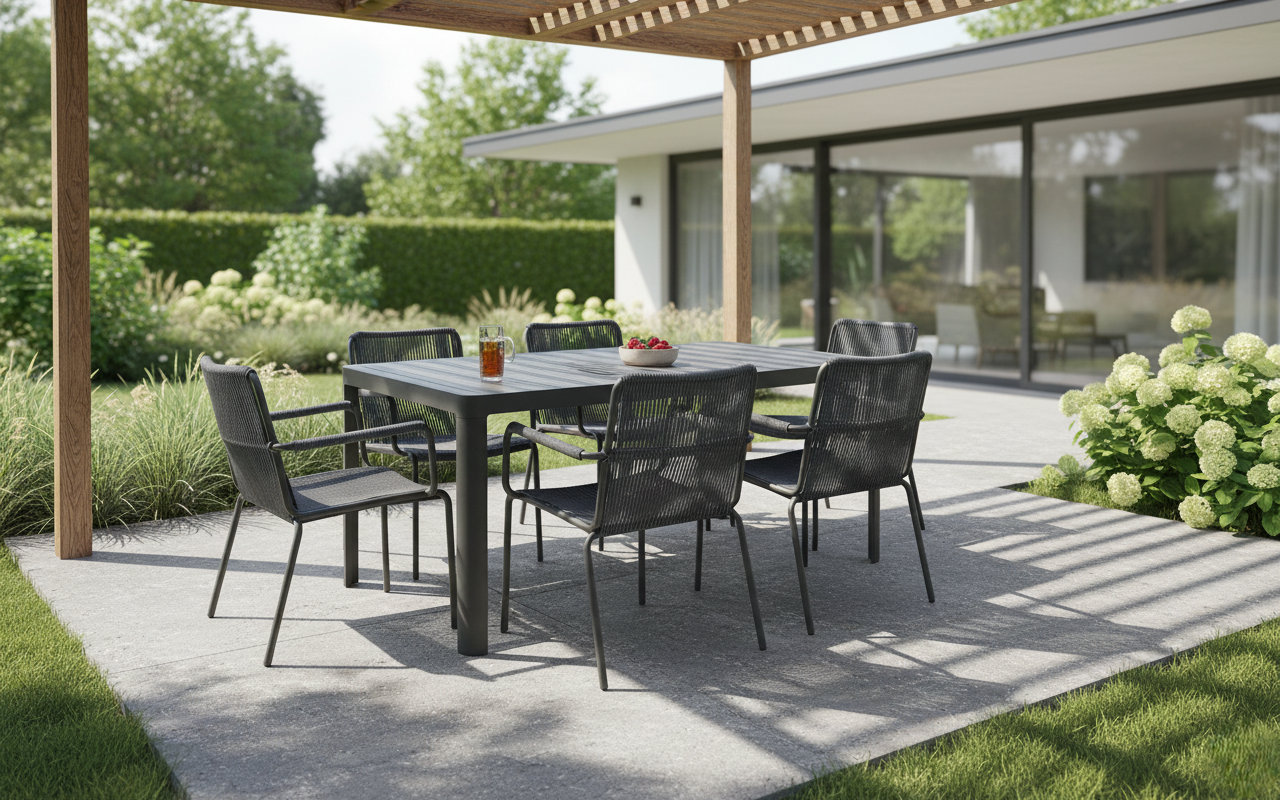 La mesa HÉCTOR de ROCO combina líneas puras y estructura sólida en un diseño contemporáneo pensado para uso profesional tanto en interior como en exterior. Fabricada íntegramente en aluminio lacado, está disponible en blanco o negro, dos acabados que realzan su estilo sobrio y versátil. Su tablero de lamas integradas aporta un detalle funcional que permite el drenaje del agua y mejora su resistencia a la intemperie. Gracias a su ligereza, durabilidad y estética equilibrada, la mesa HÉCTOR es una opción ideal para terrazas, cafeterías o espacios contract que buscan un mobiliario elegante, práctico y de mantenimiento mínimo.