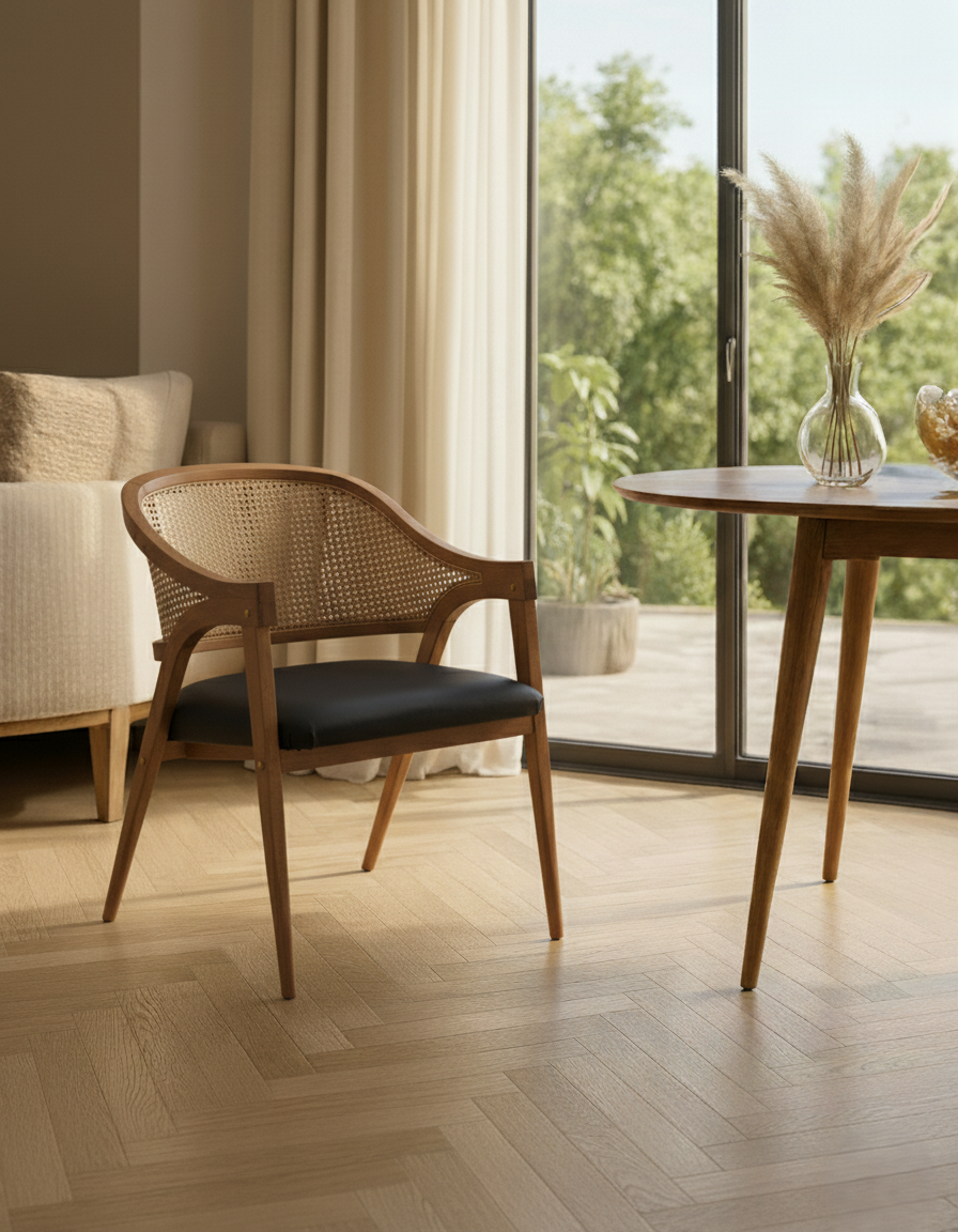 El Sillón Laredo de ROCO es una pieza concebida para proyectos contract que buscan impacto visual, solidez estructural y confort duradero. Su armazón en madera de haya barnizada transmite calidez y carácter, con acabados disponibles en diferentes tonos —del negro elegante al nogal natural— que permiten adaptar la pieza a la identidad de cada proyecto. La nobleza de la madera, trabajada con precisión, aporta un aire atemporal que refuerza la sensación de exclusividad en el espacio.