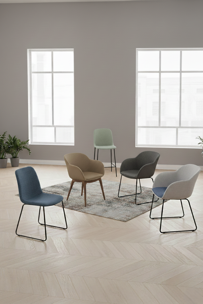 El taburete SHELL BAR es una solución para barras y zonas altas que combina presencia visual y facilidad de uso en espacios contract. Tiene dos variantes de armazón: una estructura de tubo metálico pintado (opciones como negro, blanco, kaki o gris cemento) y una alternativa en polipropileno con acabado imitación madera, lo que facilita encontrar la estética adecuada según el proyecto. La carcasa puede entregarse tapizada con una de las cartas con las que trabaja ROCO o bien con la tela aportada por el cliente, de forma que el taburete pueda integrarse cromáticamente con la carta textil del local.